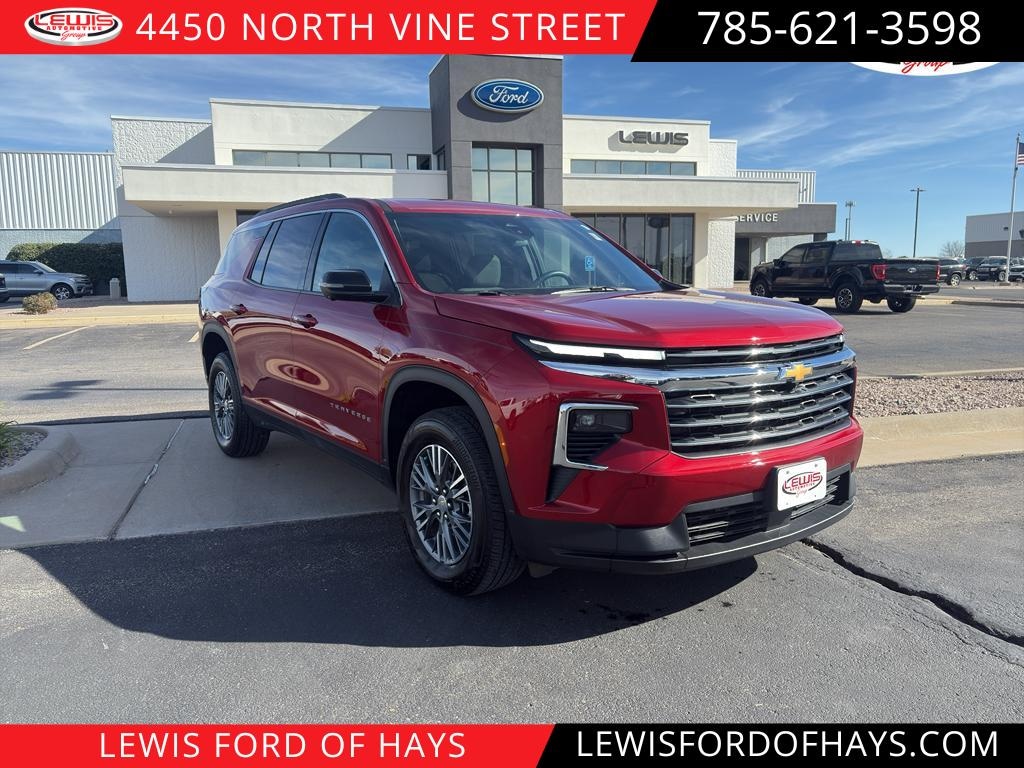 The Chevrolet Traverse has auto-adjust speed for safe following. See what's behind you with the back up camera on this vehicle. Bluetooth technology is built into this 1/2 ton suv, keeping your hands on the steering wheel and your focus on the road. The Chevrolet Traverse is pure luxury with a heated steering wheel. This vehicle comes equipped with Android Auto for seamless smartphone integration on the road. The installed navigation system will keep you on the right path. Apple CarPlay: Seamless smartphone integration for this 1/2 ton suv - stay connected and entertained on the go! Lane Keep Assist in this vehicle helps maintain safe driving by gently steering to stay within the lane. Start this 2024 Chevrolet Traverse from inside with remote start. Quickly unlock this 2024 Chevrolet Traverse with keyless entry. Front wheel drive on this model gives you better traction and better fuel economy. The vehicle gleams with a flashy red exterior.