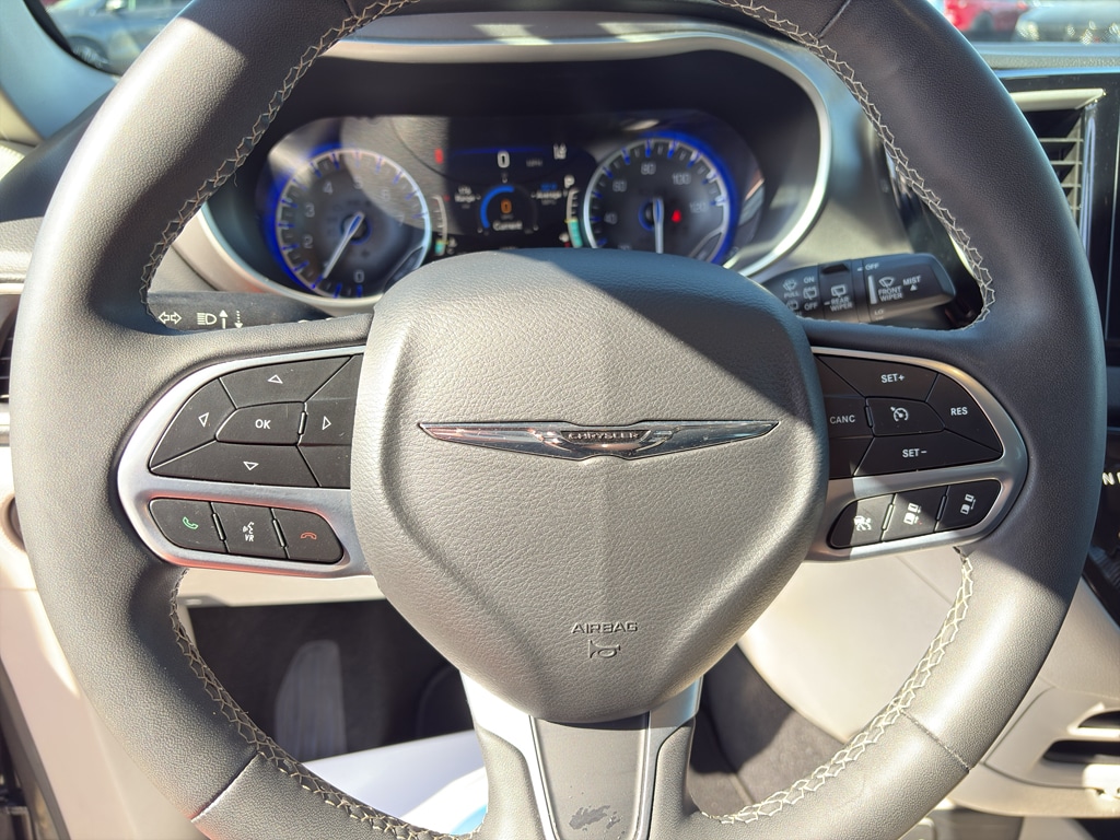 The rear parking assist technology on this 2023 Chrysler Pacifica will put you at ease when reversing. The system alerts you as you get closer to an obstruction. Bluetooth technology is built into this mini van, keeping your hands on the steering wheel and your focus on the road. This mini van comes equipped with Android Auto for seamless smartphone integration on the road. Start this mini van from inside with remote start. This 2023 Chrysler Pacifica is pure luxury with a heated steering wheel. See what's behind you with the back up camera on the vehicle. This Chrysler Pacifica's Forward Collision Warning feature alerts drivers to potential front-end collisions. Apple CarPlay: Seamless smartphone integration for it - stay connected and entertained on the go! This Chrysler Pacifica's Lane Departure Warning helps keep you in your lane. The Chrysler Pacifica keeps you comfortable with Auto Climate. The leather seats in this unit are a must for buyers looking for comfort, durability, and style.