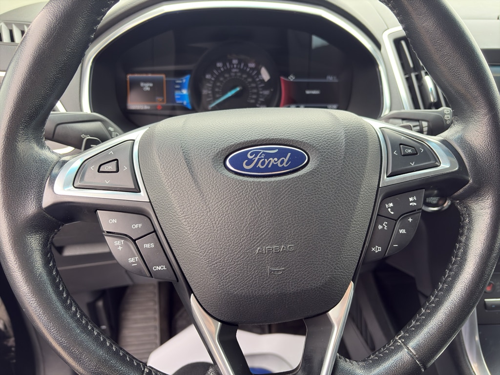 Bluetooth technology is built into this vehicle, keeping your hands on the steering wheel and your focus on the road. The leather seats in this mid-size suv are a must for buyers looking for comfort, durability, and style. Start it from inside with remote start. This Ford Edge keeps you comfortable with Auto Climate. Protect the Ford Edge from unwanted accidents with a cutting edge backup camera system. The state of the art park assist system will guide you easily into any spot. Conquer any rainy, snowy, or icy road conditions this winter with the all wheel drive system on the Ford Edge. Set the temperature exactly where you are most comfortable in this model. The fan speed and temperature will automatically adjust to maintain your preferred zone climate. Enjoy the convenience of the power liftgate on this vehicle. The Ford Edge has a 4 Cyl, 2.0L high output engine.
