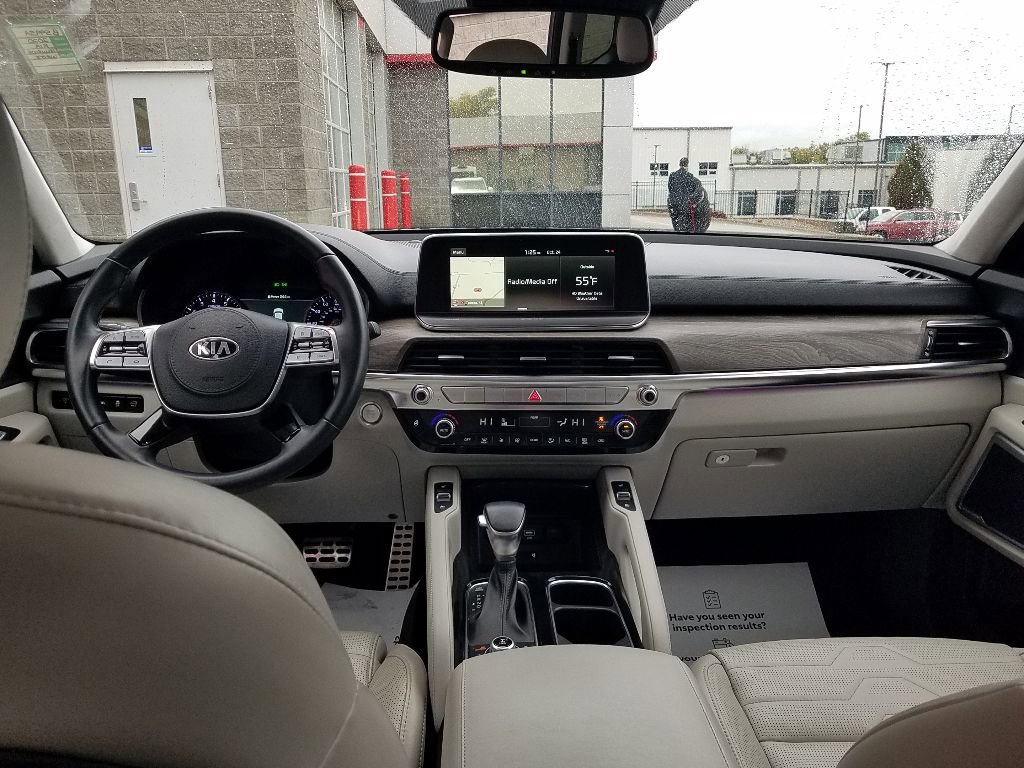 This vehicle is pure luxury with a heated steering wheel. The leather seats are soft and supportive on the Kia Telluride. Start this vehicle from inside with remote start. It offers Apple CarPlay for seamless connectivity. This unit's Rain Sensing Wipers respond to rain automatically for clear visibility. This Kia Telluride features a hands-free Bluetooth phone system. Protect this vehicle from unwanted accidents with a cutting edge backup camera system. This 2020 Kia Telluride comes equipped with Android Auto for seamless smartphone integration on the road. The vehicle utilizes collision avoidance to enhance safety by automatically detecting and evading potential accidents. The installed navigation system will keep you on the right path. The vehicle embodies class and sophistication with its refined white exterior. Enjoy the convenience of the power liftgate on the vehicle. Conquer any rainy, snowy, or icy road conditions this winter with the all wheel drive system on this unit.