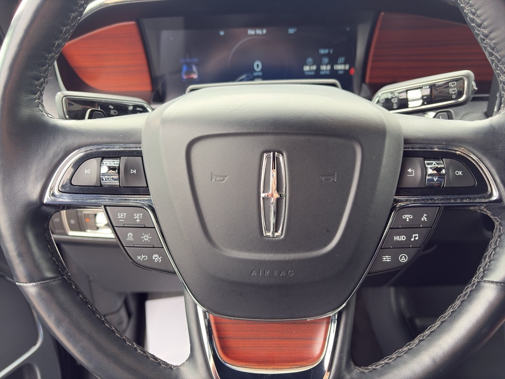 The installed navigation system will keep you on the right path. Apple CarPlay: Seamless smartphone integration for this model - stay connected and entertained on the go! See what's behind you with the back up camera on the vehicle. Start the Lincoln Navigator from inside with remote start. This vehicle has auto-adjust speed for safe following. The vehicle is pure luxury with a heated steering wheel. The vehicle features a hands-free Bluetooth phone system. The Lincoln Navigator has satellite radio capabilities. The leather seats in the vehicle are a must for buyers looking for comfort, durability, and style. This unit comes equipped with Android Auto for seamless smartphone integration on the road. When you encounter slick or muddy roads, you can engage the four wheel drive on this 1/2 ton suv and drive with confidence. This unit has a V6, 3.5L high output engine. The Lincoln Navigator has an elegant black exterior finish.